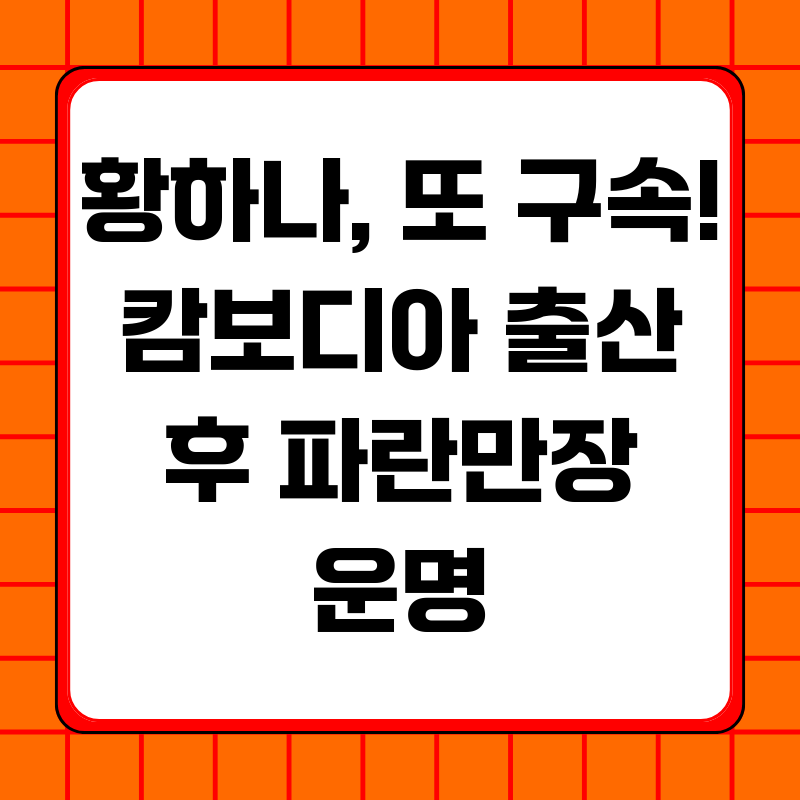 황하나 씨는 경찰 수사망을 피해 태국으로 출국했고, 이후 캄보디아에서 남자친구의 아이를 출산했습니다. 그리고 아이를 책임지고 싶다는 이유로 귀국을 결심했지만, 결국 구속되었습니다.