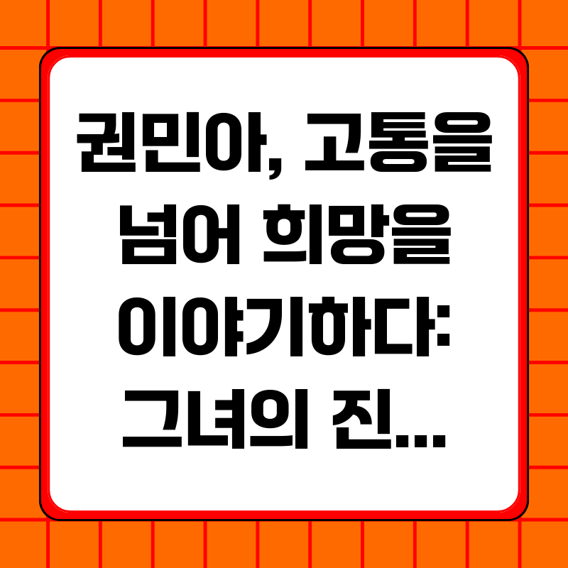 권민아 씨가 앞으로 건강하게 회복하여 다시 활동할 수 있기를 응원하며, 이 글을 읽는 여러분 또한 주변에 어려움을 겪고 있는 사람이 있다면 따뜻한 위로와 격려를 보내주시기 바랍니다.