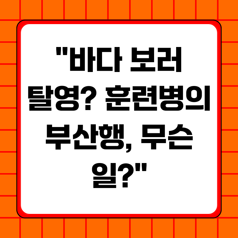 이번 사건은 충남 논산 육군훈련소에 입소한 지 1주일밖에 되지 않은 훈련병 A씨가 국군대전병원에서 탈출하여 부산 광안리 해수욕장에서 여자친구와 함께 있다가 경찰에 체포된 것으로 알려졌습니다. A씨는 경찰 조사에서 "바다가 보고 싶었다"고 진술한 것으로 전해집니다. 이 짧은 문장 속에는 단순한 변덕을 넘어선 복잡한 심경이 담겨 있을 수 있습니다. 빡빡한 훈련 일정, 낯선 환경에 대한 불안감, 그리고 사회와의 단절감 등이 복합적으로 작용했을 가능성을 배제할 수 없습니다.