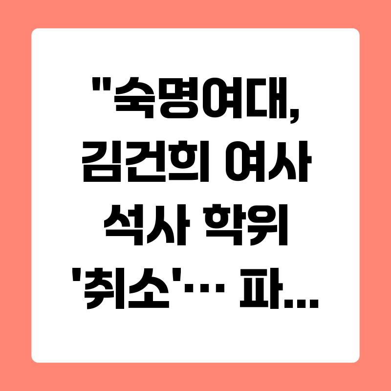 최근 숙명여자대학교가 김건희 여사의 석사 학위를 취소하면서 정계와 학계에 큰 파장이 일고 있습니다. 단순한 학위 취소 결정을 넘어, 이번 사태가 윤석열 정부는 물론, 향후 정치 지형에 어떤 영향을 미칠지, 그리고 대학가의 연구 윤리 확립에 어떤 시사점을 던져주는지 심층적으로 분석해보고자 합니다.