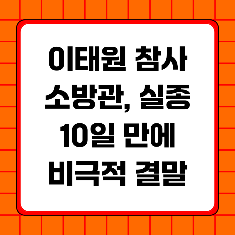 이태원 참사로 희생된 모든 분들의 명복을 빌며, 특히 안타깝게 세상을 떠난 소방관 A씨의 숭고한 희생을 잊지 않겠습니다. 그의 죽음이 헛되지 않도록, 우리는 사회적 안전망을 강화하고, 재난 현장에서 헌신하는 영웅들을 보호하는 데 최선을 다해야 합니다.