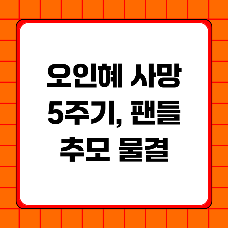 9월 14일, 배우 오인혜 님의 5주기가 되었습니다. 5년이라는 시간이 흘렀지만, 그녀를 기억하는 팬들의 추모 물결은 여전히 뜨겁습니다. 갑작스러운 비보에 많은 이들이 슬픔에 잠겼던 그때를 기억하며, 오늘은 오인혜 님의 삶과 예술, 그리고 그녀가 우리에게 남긴 메시지에 대해 이야기해보려 합니다. 단순한 추모를 넘어, 그녀의 삶을 통해 우리 사회가 잊지 말아야 할 것은 무엇인지 함께 고민해보는 시간을 갖겠습니다.