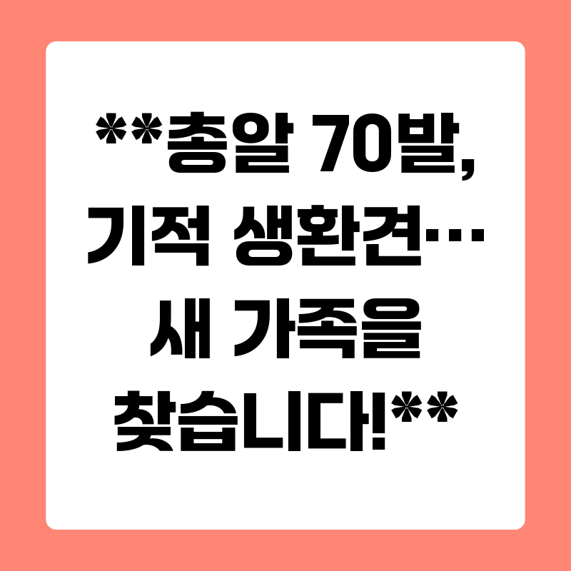 총알 70발을 뚫고 살아남은 귀동이의 이야기는 우리에게 큰 감동과 함께, 동물 학대라는 슬픈 현실을 다시 한번 상기시켜 줍니다. 귀동이가 새로운 가족을 만나 행복하게 살아갈 수 있도록 응원하는 것은 물론, 우리 사회의 동물 보호 수준을 한 단계 끌어올리기 위한 노력을 멈추지 않아야 합니다.