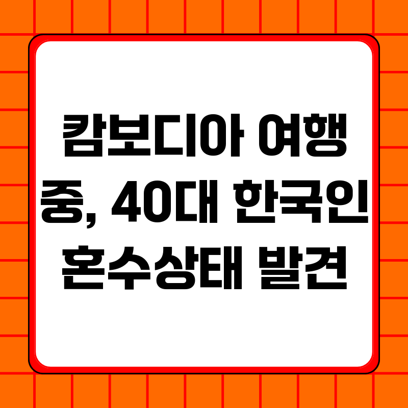 최근 캄보디아로 여행을 떠난 40대 한국인 남성이 실종 후 혼수상태로 발견되었다는 안타까운 소식이 전해졌습니다. 단순한 사고일까요, 아니면 다른 배경이 있는 걸까요? 이 사건을 통해 해외여행, 특히 동남아 지역 여행 시 발생할 수 있는 위험 요소를 짚어보고, 여행 안전에 대한 심층적인 분석과 함께 필요한 예방책을 제시하고자 합니다.