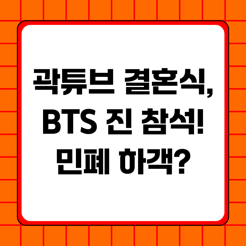 최근 인기 유튜버 곽튜브(본명 곽준빈)의 결혼식이 화려하게 치러졌습니다. 사회는 방송인 전현무, 축가는 다비치, 그리고 여행 유튜버 빠니보틀의 축사까지, 그야말로 인싸력을 제대로 보여줬는데요. 특히, 이날 결혼식에는 월드스타 BTS의 진이 참석해 뜨거운 화제를 모았습니다. 하지만, 일각에서는 그의 참석을 두고 '민폐 하객' 논란이 불거지기도 했습니다. 과연 무슨 일이 있었던 걸까요? 그리고 우리는 이 현상을 어떻게 바라봐야 할까요?