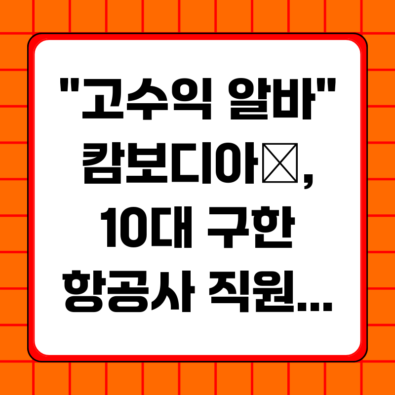 고수익 알바의 위험한 유혹: 캄보디아행 막은 항공사 직원의 용기
