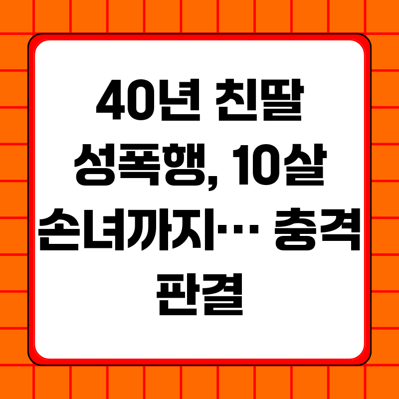 최근 70대 남성이 40년간 친딸을 성폭행하고, 심지어 손녀까지 성폭행한 끔찍한 사건이 사회에 큰 충격을 안겼습니다. 대법원은 징역 25년을 확정했지만, 이 사건은 단순한 개인의 범죄를 넘어 우리 사회에 뿌리 깊게 박힌 가정 내 성폭력의 심각성을 다시 한번 일깨워주는 계기가 되었습니다. 이 사건을 통해 우리는 가정이라는 울타리 안에서 벌어지는 끔찍한 범죄의 실태를 직시하고, 피해자 보호와 재발 방지를 위한 근본적인 대책 마련에 나서야 합니다.