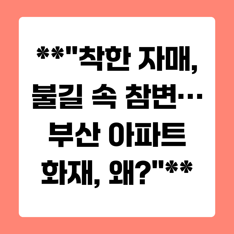 부산 아파트 화재 참변, 착한 자매의 안타까운 희생과 남겨진 과제