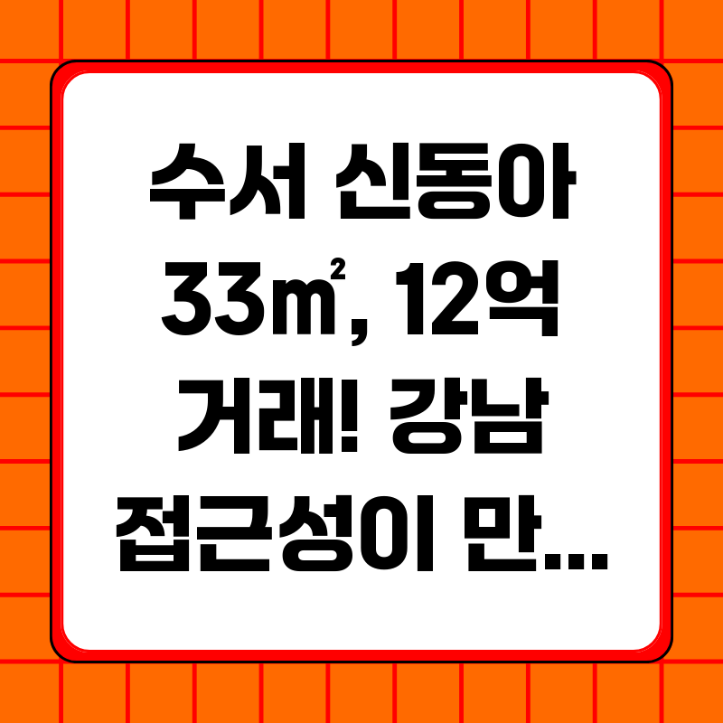 ➡️ 원본 포스팅( 수서신동아 33제곱미터 12억 거래 ... ) 보러가기