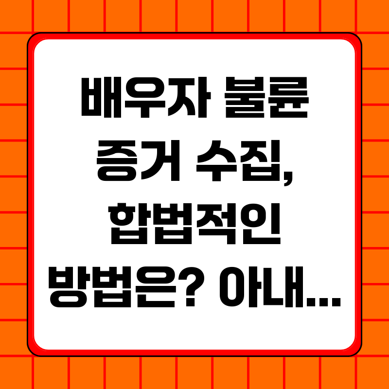 배우자의 불륜 사실을 밝히기 위해 증거를 수집하는 과정, 어디까지가 합법일까요? 최근 불륜 증거를 수집하려던 아내가 오히려 성범죄 혐의로 처벌받는 사례가 발생하면서, 증거 수집의 위험성과 법적 기준에 대한 관심이 높아지고 있습니다. 배우자의 외도를 입증하고 법적 책임을 묻는 것은 중요하지만, 그 과정에서 불법적인 행위는 또 다른 법적 문제로 이어질 수 있습니다. 이 글에서는 안전하고 합법적인 방법으로 불륜 증거를 확보하는 방법을 알아보고, 관련 법률 및 실제 판례를 통해 증거 인정 범위와 한계를 명확히 제시합니다.➡️ 원본 포스팅( **불륜 증거 촬영, 아내 성범죄? ... ) 보러가기불륜은 민법상 이혼 사유에 해당하며, 상간자 소송을 통해 정신적 고통에 대한 배상을 받을 수 있는 근거가 됩니다. 하지만..