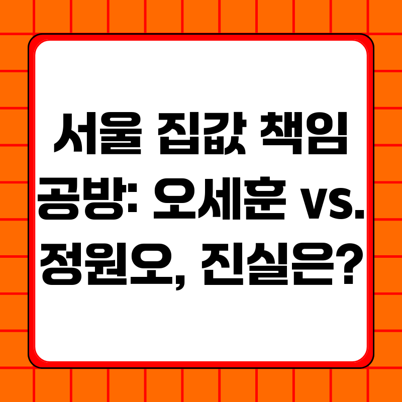 최근 서울 집값 상승의 책임을 두고 오세훈 서울시장 측과 정원오 성동구청장 간의 날선 공방이 벌어지고 있습니다. 과연 누구의 주장이 더 설득력이 있을까요? 이 논쟁의 핵심을 파헤쳐 보고, 서울 부동산 시장의 현실적인 문제점과 해결 방안을 모색해 보겠습니다.➡️ 원본 포스팅( 오세훈 측 정원오 서울 집값 책임론 ... ) 보러가기오세훈 시장 측은 정원오 구청장의 '서울 집값 책임론' 주장에 대해 강하게 반박하며, 이는 특정 시점의 데이터만을 선택적으로 활용한 '아전인수'적인 해석이라고 비판합니다. 서울시의 부동산 정책 방향과 성동구를 포함한 강남 외 지역의 집값 상승세에 대한 시각차가 이번 논쟁의 배경에 자리 잡고 있습니다.오 시장은 규제 완화와 재개발·재건축 활성화를 통해 주택 공급을 확대하고 시장을 안..