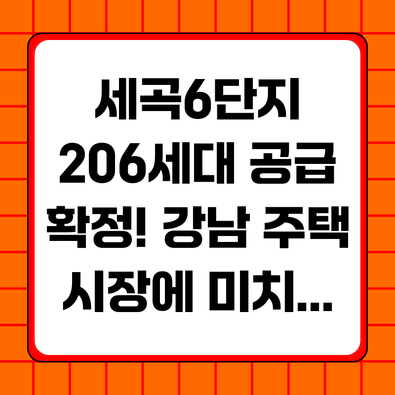 세곡6단지 206세대 공급 확정! 강남 주택 시장에 미치는 영향은?