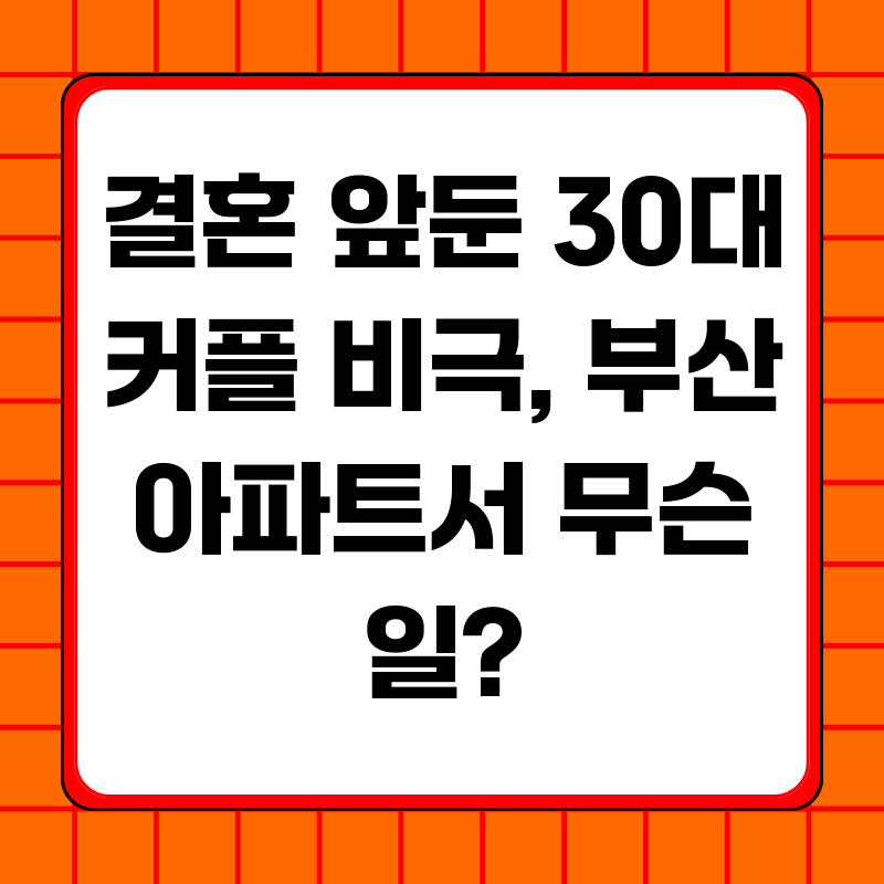 결혼 앞둔 30대 커플 비극, 부산 아파트서 무슨 일?