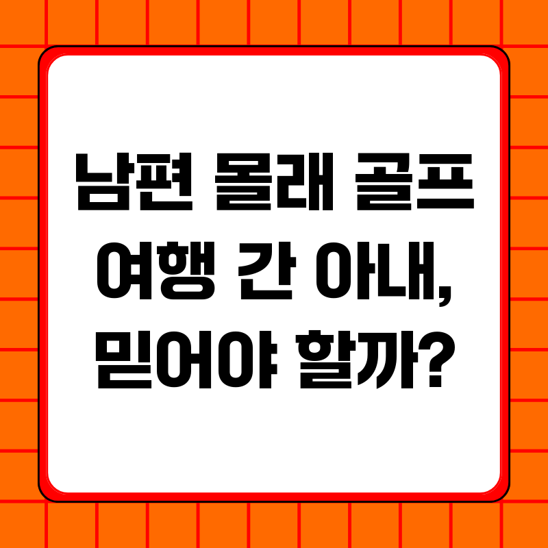 부부 사이에 가장 중요한 것은 무엇일까요? 아마 많은 분들이 '믿음'이라고 답할 것입니다. 하지만 그 믿음이 흔들리는 순간, 관계는 위태로워질 수 있습니다. 최근 온라인 커뮤니티를 뜨겁게 달군 한 남성의 사연은 이러한 딜레마를 잘 보여줍니다. 아내가 남편 몰래 남자 지인들과 골프 여행을 다녀왔다는 사실, 그리고 또 다른 여행 계획 앞에서 남편은 깊은 고민에 빠졌습니다. 이 사연을 통해 부부 관계에서 믿음의 의미를 되짚어보고, 갈등 상황에 현명하게 대처하는 방법을 모색해 보겠습니다.