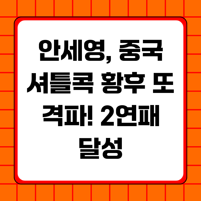 짜릿한 승전보가 울려 퍼졌습니다. 안세영 선수가 프랑스 오픈 여자 단식 결승에서 '천적' 왕즈이를 꺾고 2연패를 달성했다는 소식입니다. 단순한 승리를 넘어, 안세영 선수는 '공안증'이라는 심리적 압박감까지 극복하며 압도적인 기량을 선보였습니다. 과연 그녀의 성공 비결은 무엇일까요? 그리고 이 승리가 우리에게 던지는 의미는 무엇일까요?