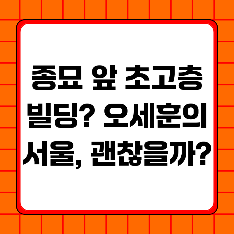종묘 앞 초고층 빌딩 논란, 서울의 미래는 어디로?서울 종묘 앞에 142m 높이의 초고층 빌딩 건설 계획이 발표되면서 논란이 일고 있습니다. 오세훈 서울시장의 결정에 대해 더불어민주당은 물론, 국가유산청까지 반대하고 나서면서 논쟁은 더욱 격화되는 양상입니다. 과연 이 문제는 단순한 건축 계획을 넘어, 서울의 역사와 미래에 어떤 의미를 가지는 것일까요? 저는 이 논란을 통해 우리가 서울이라는 도시의 정체성과 가치에 대해 다시 한번 고민해봐야 한다고 생각합니다.종묘 앞 초고층 빌딩, 논란의 핵심은 무엇인가?이번 논란의 핵심은 세계문화유산인 종묘의 경관을 해칠 수 있다는 우려입니다. 종묘는 조선시대 역대 왕과 왕비의 신주를 모신 곳으로, 역사적, 문화적 가치가 매우 높습니다. 이러한 종묘 바로 앞에 초고층 빌..